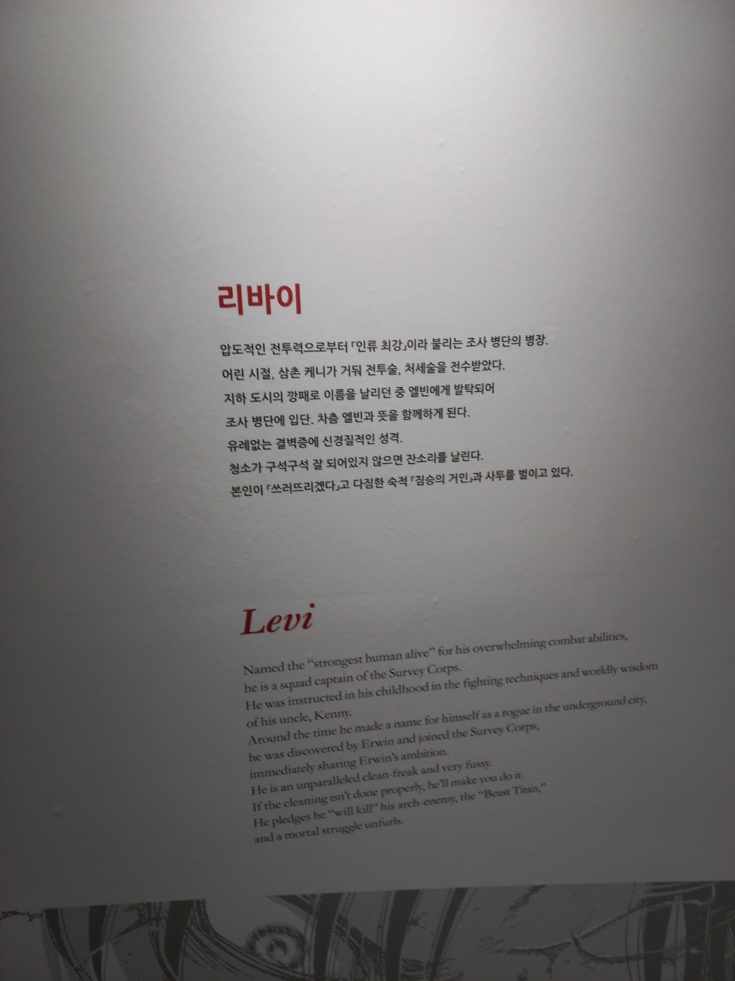 진격의 거인 전시회는 1시간 좀 안되서 다 둘러볼 수 있었다. (내가 하나하나 꼼꼼히 봤는데도 그렇다)