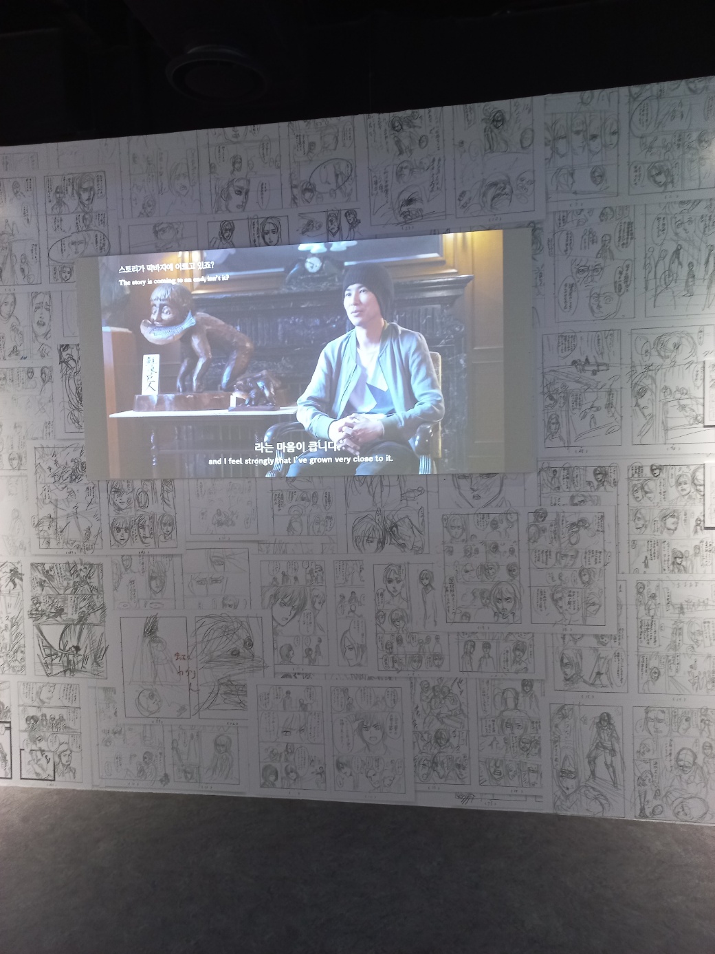 마지막 방에는 작가의 수많은 콘티들과 인터뷰 영상이 있었다.