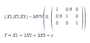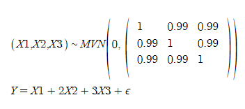 다중 공선성을 좀 더 심각하게 만들어서 위 과정을 반복해보았다. 즉, 아래와 같이 데이터 생성과정을 바꾸었다.
