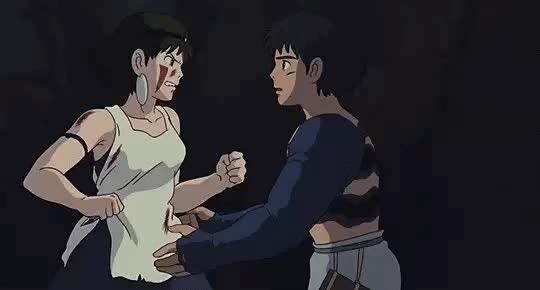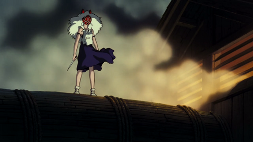이 애니는 기본적으로 인간의 자연파괴와 거기에 대항하는 자연신들(동물들로 표현된다)에 대한 이야기인데, 원령공주는 자연의 편에선 인간으로 대표할수도 있을듯 하다.